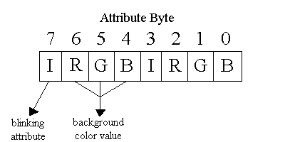 With bits 5 and 6 of the MDA/CGA mode register clear, the lower nibble of the attribute byte provides the 4-bit foreground color value and the upper nibble of the attribute byte provides the 4- bit background color value.