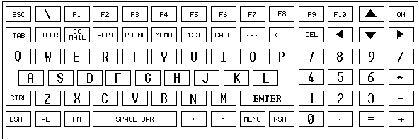 The following diagram shows key cap legends for the HP palmtop keyboard.